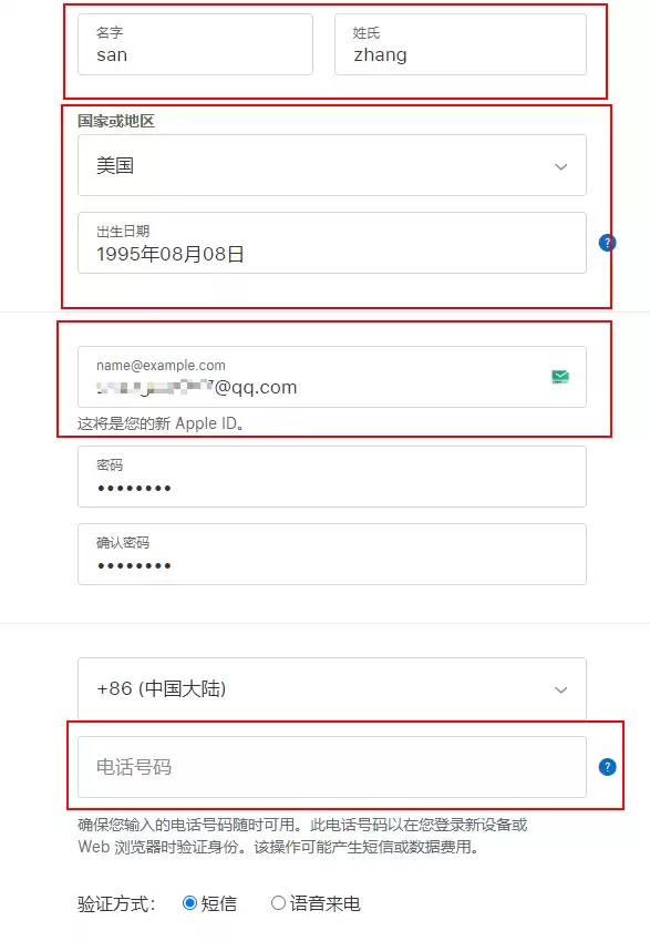 填写完信息之后,会依次验证邮箱和手机号码,邮箱就是你的Apple ID,手机号用于身份验证!